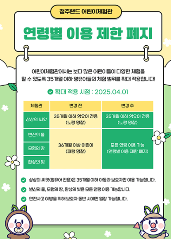 예전에는 36개월미만 어린이는 1개의 체험관만 이용 가능했는데, 2025년 4월 1일부터 모든 공간을 이용할 수 있게 정책이 바뀌었습니다. 다만, 2층에 위치한 '상상의 씨앗' 체험관은 영유아의 안전을 위해 36개월 미만 아이들만 이용 가능합니다.